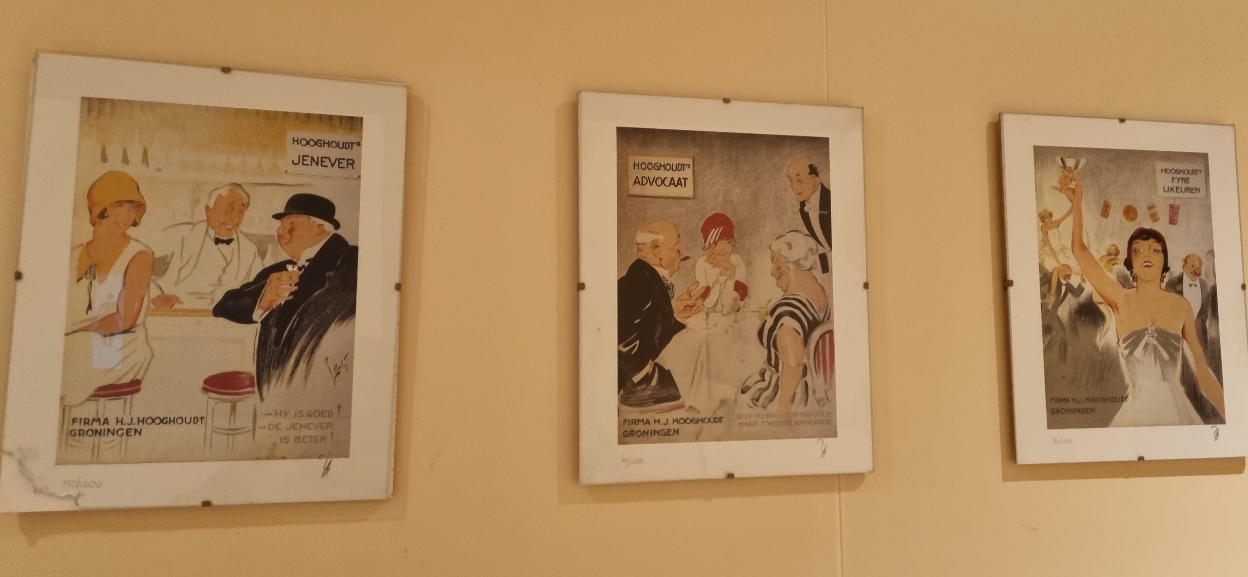 De drie werkjes hangen al ruim 20 jaar tegenover onze toiletten in het proeflokaal en ja, ik moet dringend nieuwe lijstjes kopen.